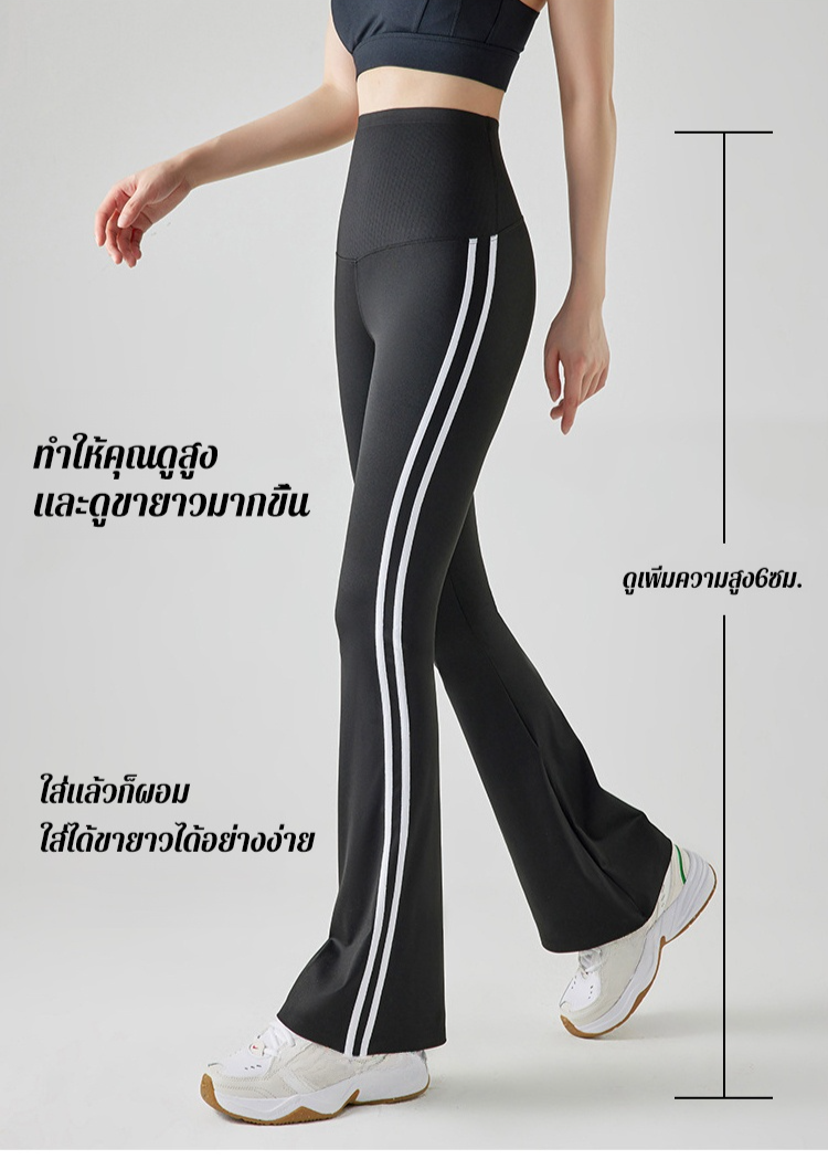 【🔥ล้ำเทรนด์ ไซต์กระชับพลิ้ว】กางเกงเลกกิ้งทรงขากระดิ่งลายทาง