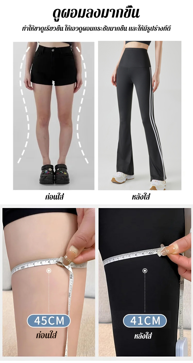 ✅ ตัดเย็บแบบ 3D สามมิติ 🎯 กระชับรอบเอวเพื่อหน้าท้องแบนราบ 🦵 ดีไซน์บานออกเล็กน้อยเพื่อให้ขาดูยาวขึ้น